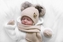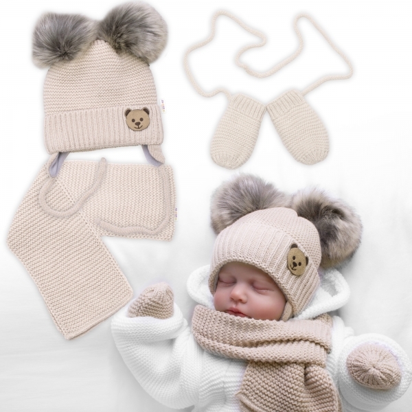 Dětská sada, zimní čepice s šálou + rukavičky 3D, Teddy Bear - béžová; 56-68 (0-6 m)