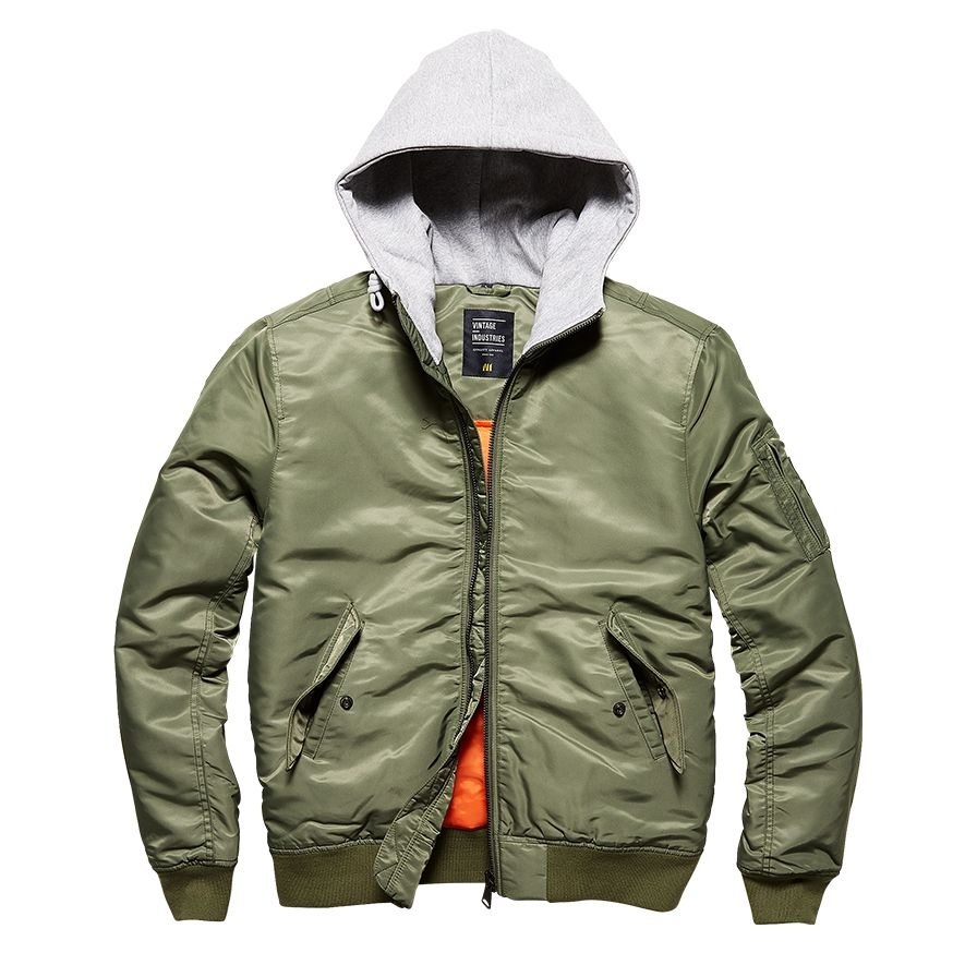 Bunda Westend od holandské značky Vintage Insutries je s kapucí a vhodná na chladnějším přechodné obdobím, tedy jaro a podzim.Bunda pěkně sedí (regular-fit), je v kratším, přibližně do pasu, má kvalitně zpracované švy, výrazná oranžová vnitřní část podle předlohy letecké bundy -...