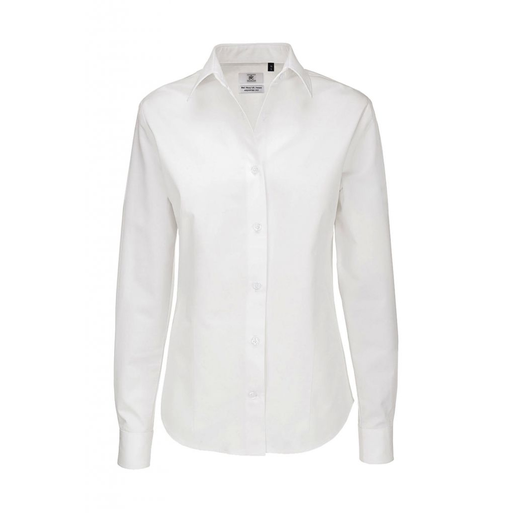Bavlněná dámská košile s dlouhým rukávem.Od značky B&C.Vlastnosti:• čistě bavlněná tkanina Easy Care s úpravou jemnou na dotek• límec s měkkým lemováním• složený lem u rukávu• sedlo vzadu se dvěma záhyby a módním prošitím• zakulacený spodní lem se čtvercovými bočními výztuhami• knoflíky jsou s perleťovým efektem• poslední otvor na knoflík je horizontální• dodáván je také jeden náhradní knoflík