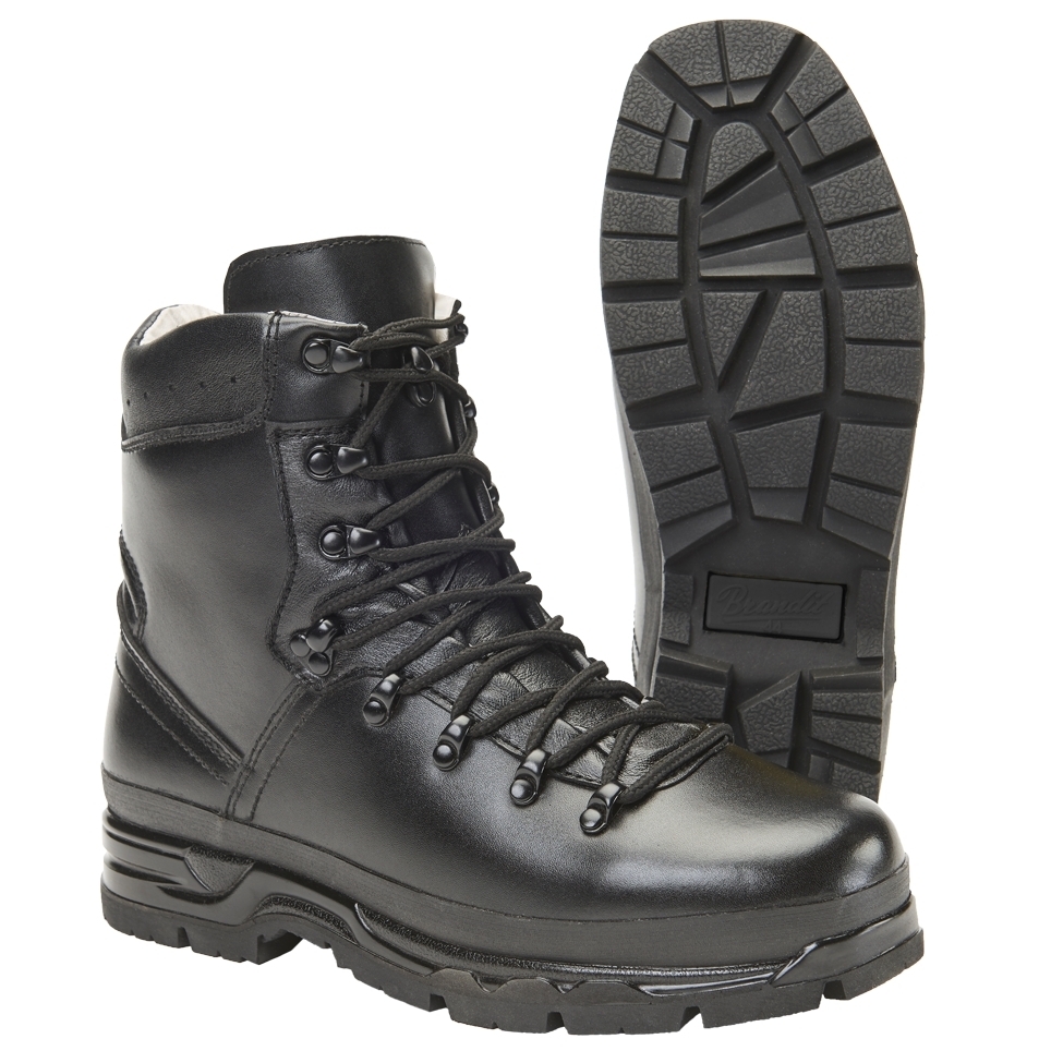 Pevná kožená obuv od německé firmy Brandit s 8 oky na šněrování.Materiál:svrchní: 100 % hovězí kůževložka: Thinsulate 90 % polyester, 10 % bavlnapodrážka: guma przeczytaj całość