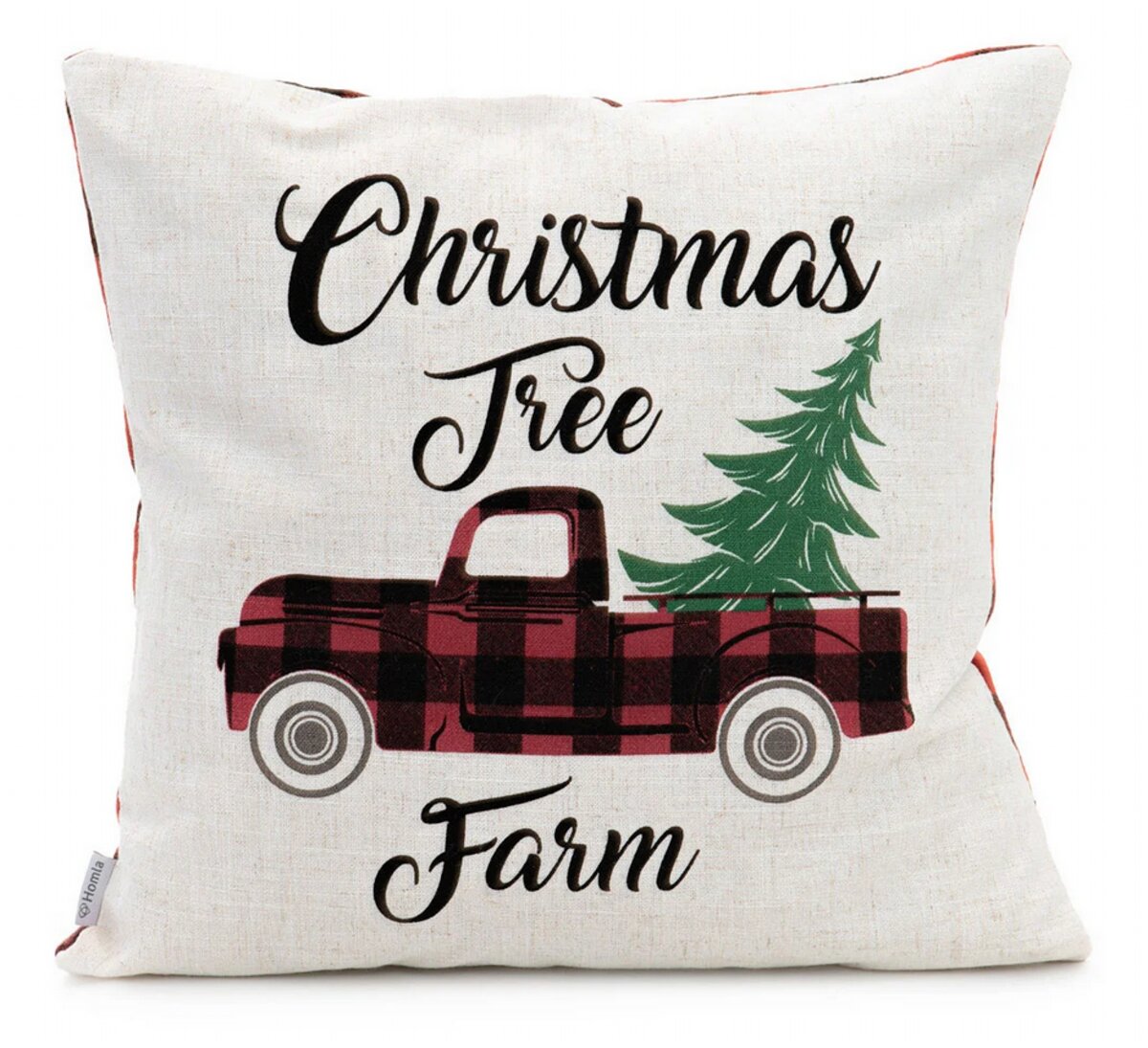 Vánoční oboustranný polštář | KARO | s autem a vánočním stromkem | 45x45 | 827858