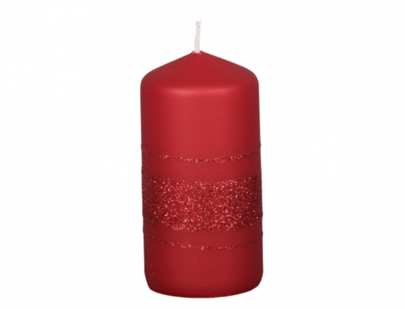 Svíčka ve tvaru válce. Její povrch je hladký v úpravě metalický mat. Navíc je zdobena různě širokými třpytivými proužky. Díky tomu je velmi zdobná a vyjímá se ve vánočních dekoracích. Doba hoření: 30 hodin. Rozměry: průměr 6 cm, výška 9 cm. Barva: červená. przeczytaj całość