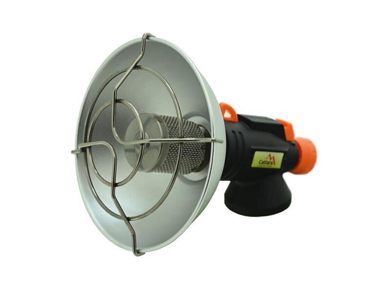 Zařízení je opatřeno hořákem se sítěnou ocelovou mřížkou s výbornými tepelnými vlastnostmi a kovovým reflektorem průměru 12,5 cm pro usměrnění vyzařovaného tepla.