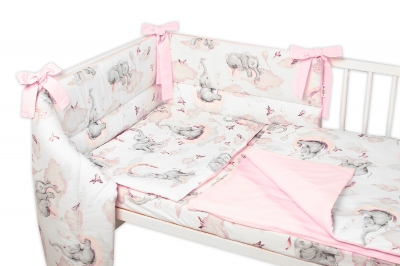 3-dílná sada Mantinel s povlečením Baby Nellys, Slon a Duha, růžová/bílá; 120x90