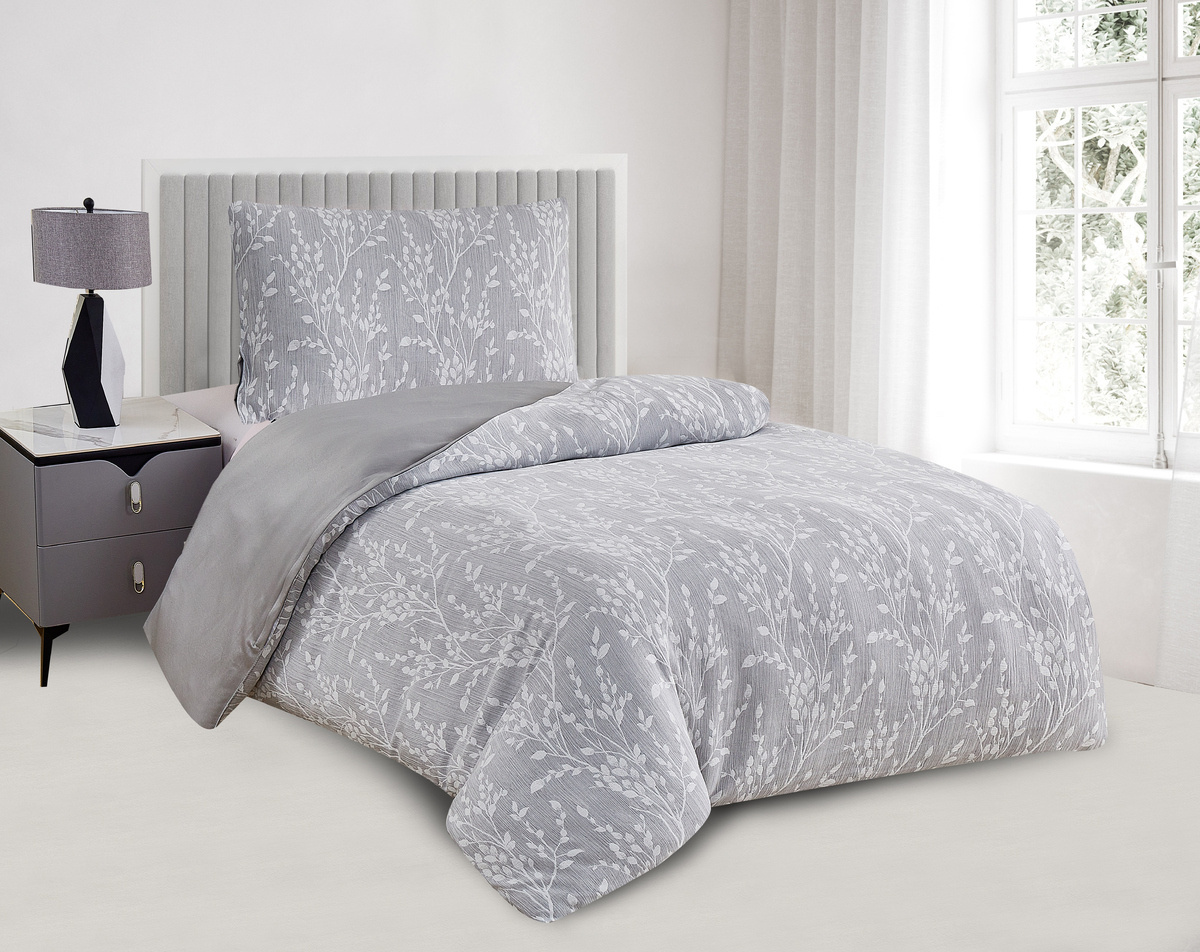 Souprava 1+1 ložního bavlněného povlečení, Žakárové větvičky, šedé 140 x 200 cm + 70 x 90 cm