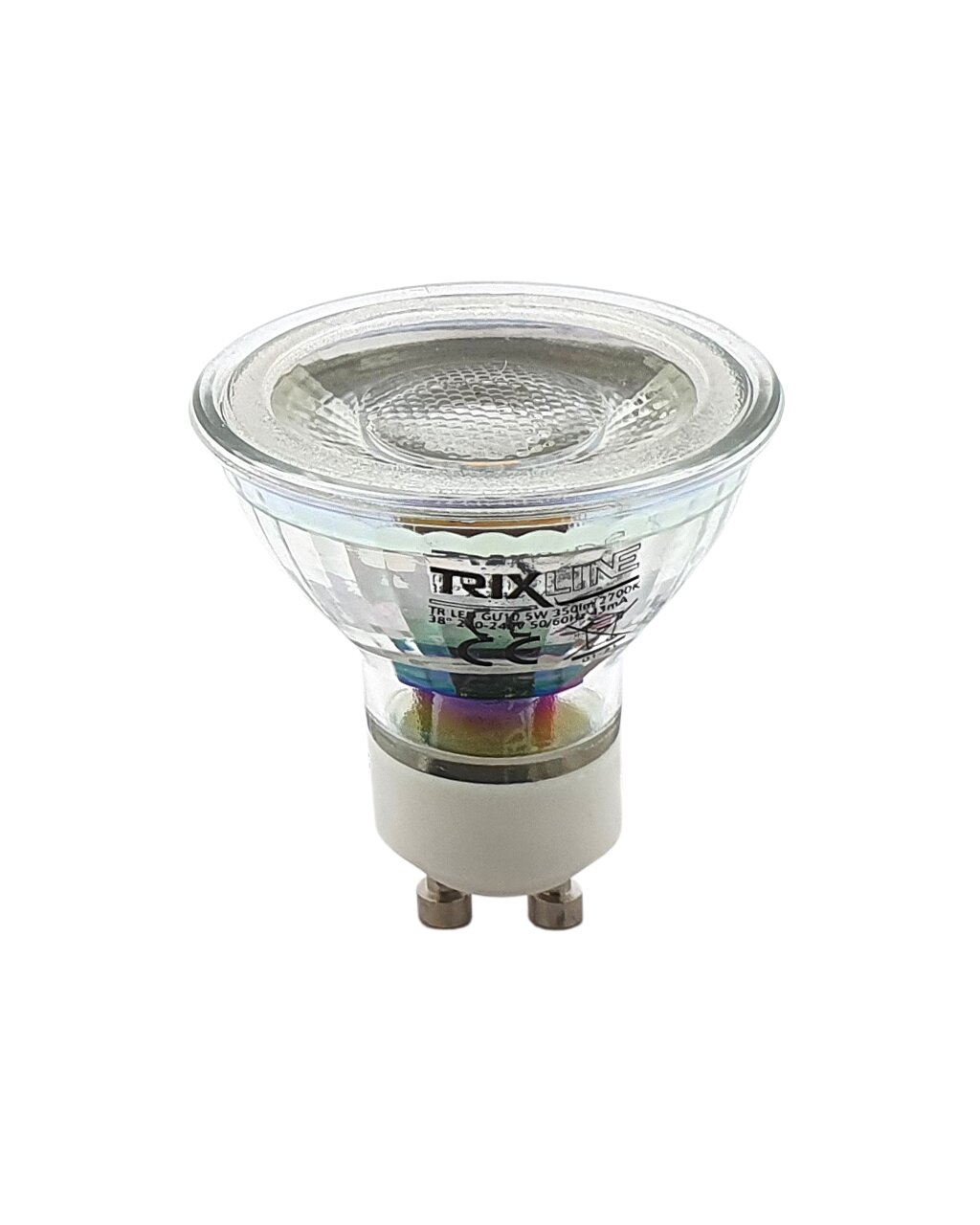 Oszczędna żarówka LED Trixline z trzonkiem GU10, przyjazna dla środowiska, nie zawiera rtęci ani ołowiu, dodatkowo sprawdza się także w skrajnie niskich i wysokich temperaturach, z którymi żarówki żarnikowe mają problemy. Jej żywotność sięga nawet 30 000 godzin. Dzięki mocy 5W doskonale zastąpi klasyczną żarówkę 42W. Żarówka LED zapala się natychmiast po włączeniu bez żadnego opóźnienia i wydziela przyjemne ciepłe białe światło 2700K.