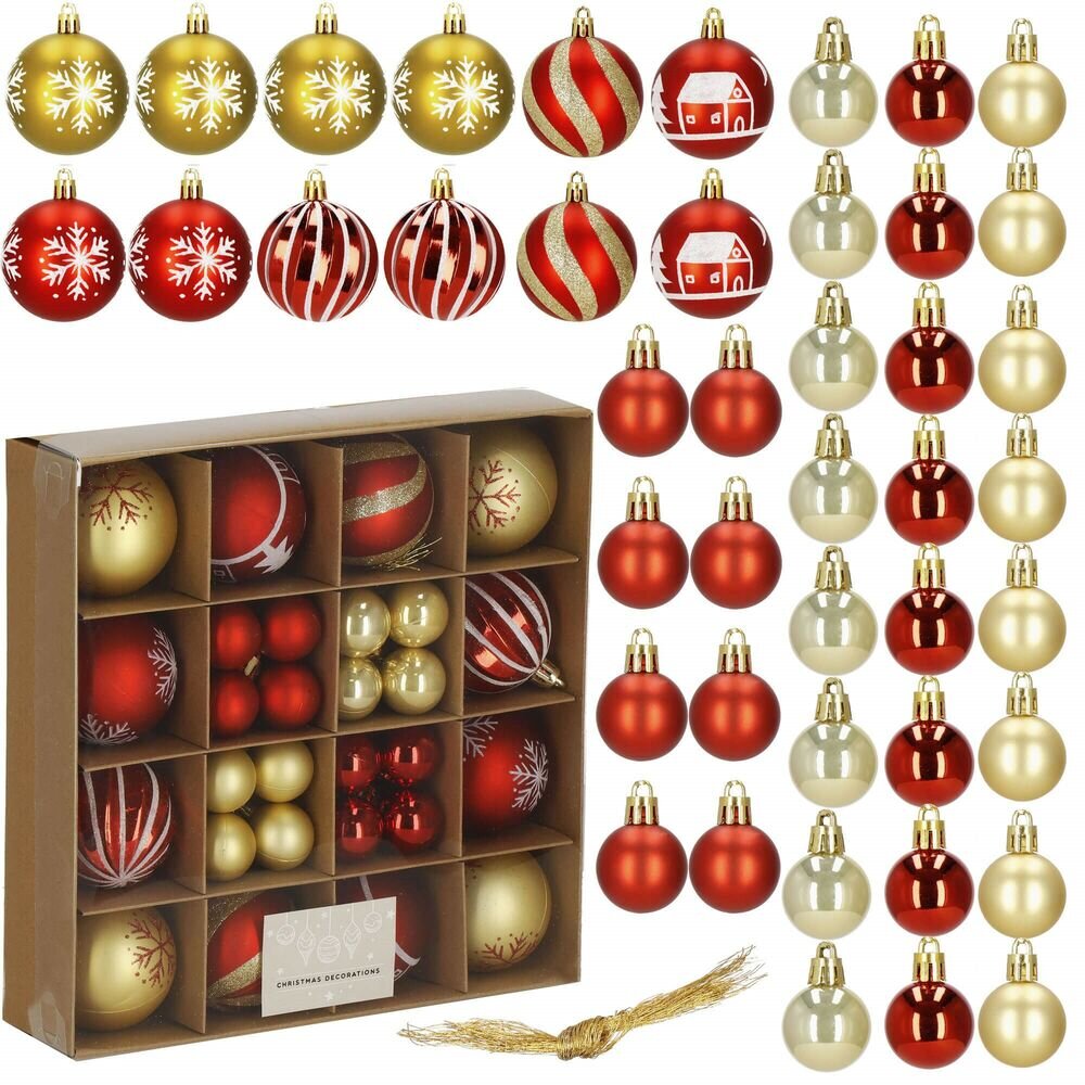 Vánoční baňky červeno-zlaté mix - sada 42ks