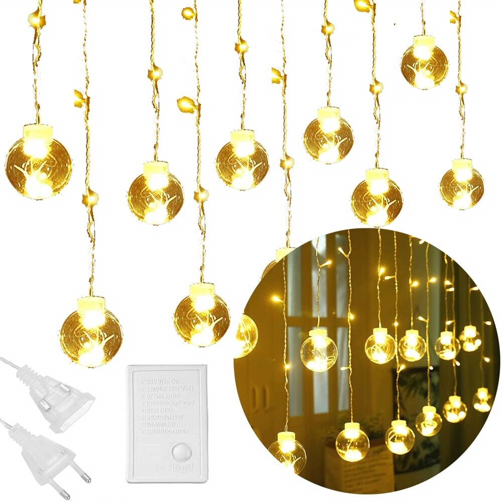 LED světelný závěs baňky - 2,5x1m, 108LED, 8 funkcí, IP20, teplá bílá