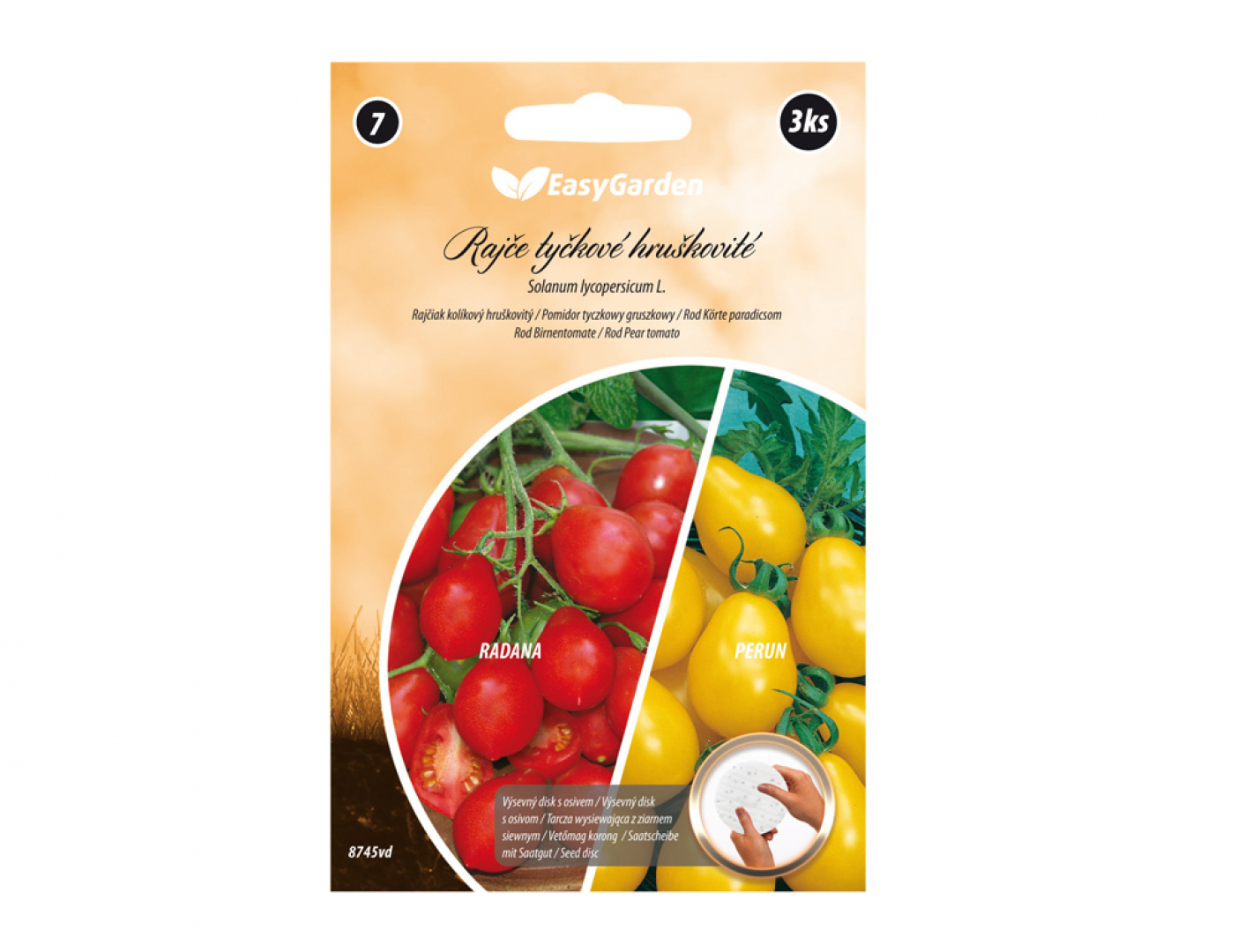 Gotowa mieszanka ma optymalną liczbę nasion i ustaloną odległość między ziarnami, dzięki czemu nie trzeba później przerzedzać roślin ani ich wyrywać. Nasiona mają wysoką zdolność kiełkowania i tylko potrzebną ilość. W opakowaniu znajdują się 3 dyski z 2 odmianami pomidorów gruszkowych - 1 dysk Radana i 2 dyski Perun. Średnica dysku: 8 cm.