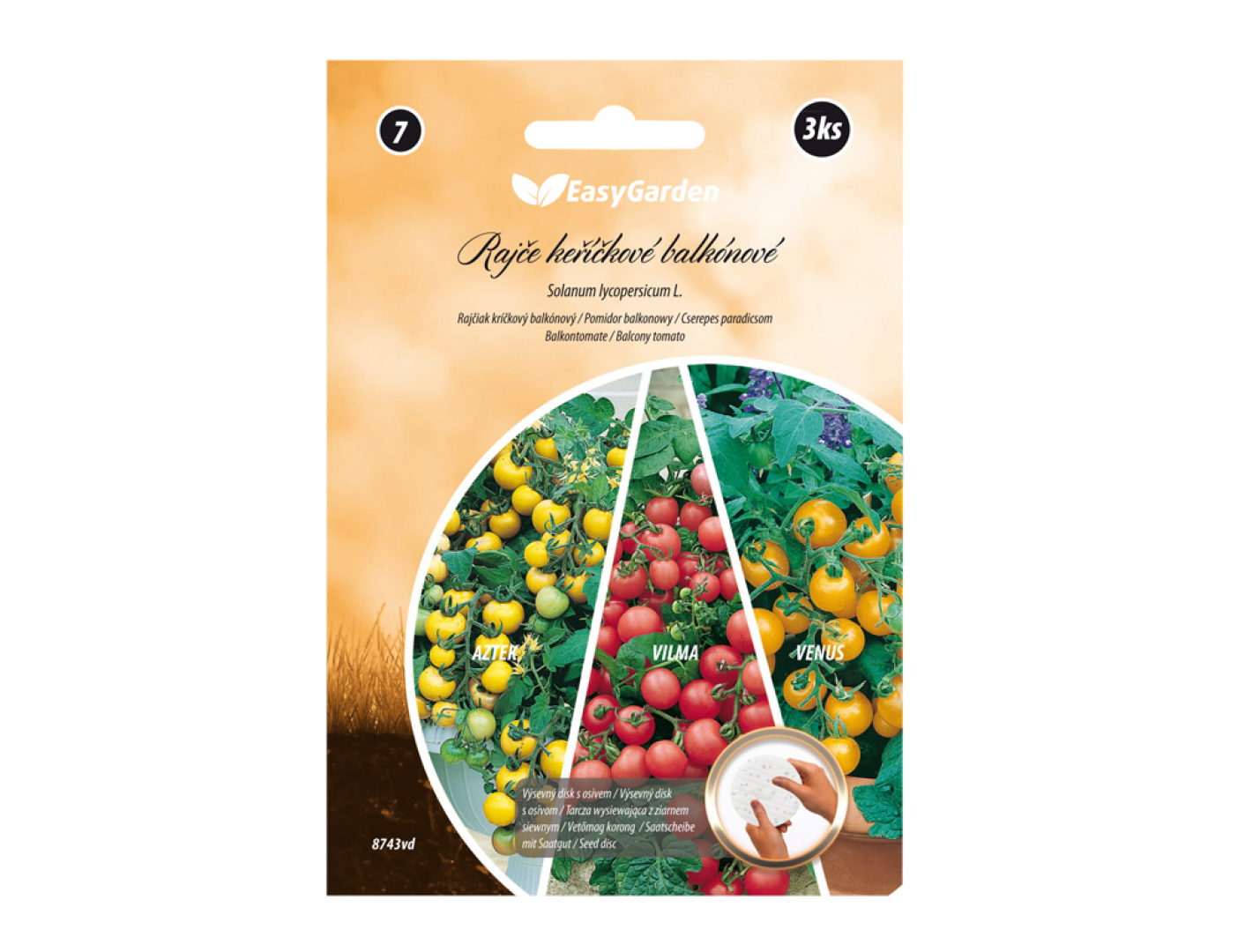 Przygotowana mieszanka ma optymalną liczbę nasion i ustaloną odległość między nasionkami, dzięki czemu nie ma potrzeby późniejszego przerywania roślin ani ich przerzedzania. Nasiona mają wysoką zdolność kiełkowania i jest ich tylko tyle, ile potrzeba. W opakowaniu znajdują się 3 krążki - 3 odmiany krzewinkowe pomidorów balkonowych - Aztek, Venus, Vilma. Średnica krążka: 8 cm.