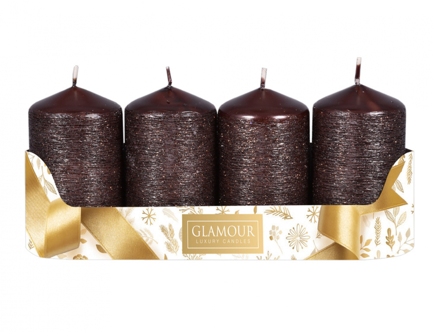 Škrábaná adventní svíčka s metalickým lesklým povrchem, dozdobeným jemnými glitry. Hlava je rovná, zaoblená. Dekorativní vzhled ozvláštní každý vánoční svícen či věnec. Průměr: 5 cm, výška: 9 cm. Doba hoření: 30 hodin. V balení jsou 4 kusy. Barva: tmavě hnědá. przeczytaj całość