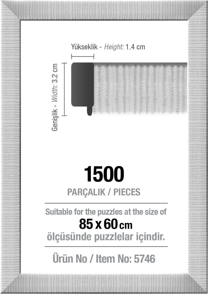 Designový rám na puzzle bez výplně. Rám je určen pro ART PUZZLE 1500 dílků o maximálním rozměru 85 x 60 cm. Lze jej použít i pro puzzle jiných značek (stejného rozměru). Balení obsahuje: rám na puzzle, kartonovou podložku a háček na zavěšení zarámovaného puzzle. Návod Nejprve puzzle slepte...