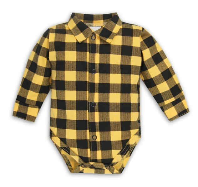 Chlapecké body zapínání uprostřed na cvočky.Jedinečné košilové body pro kluka, s elegantním černo-medovým kostkovaným vzorem.Body je vpředu celorozepínací na antialergické patentky. Lehce vyztužený límec a rozepnuté manžety na rukávech dodávají outfitu na eleganci. Krásná sytá barva oblečení vám...