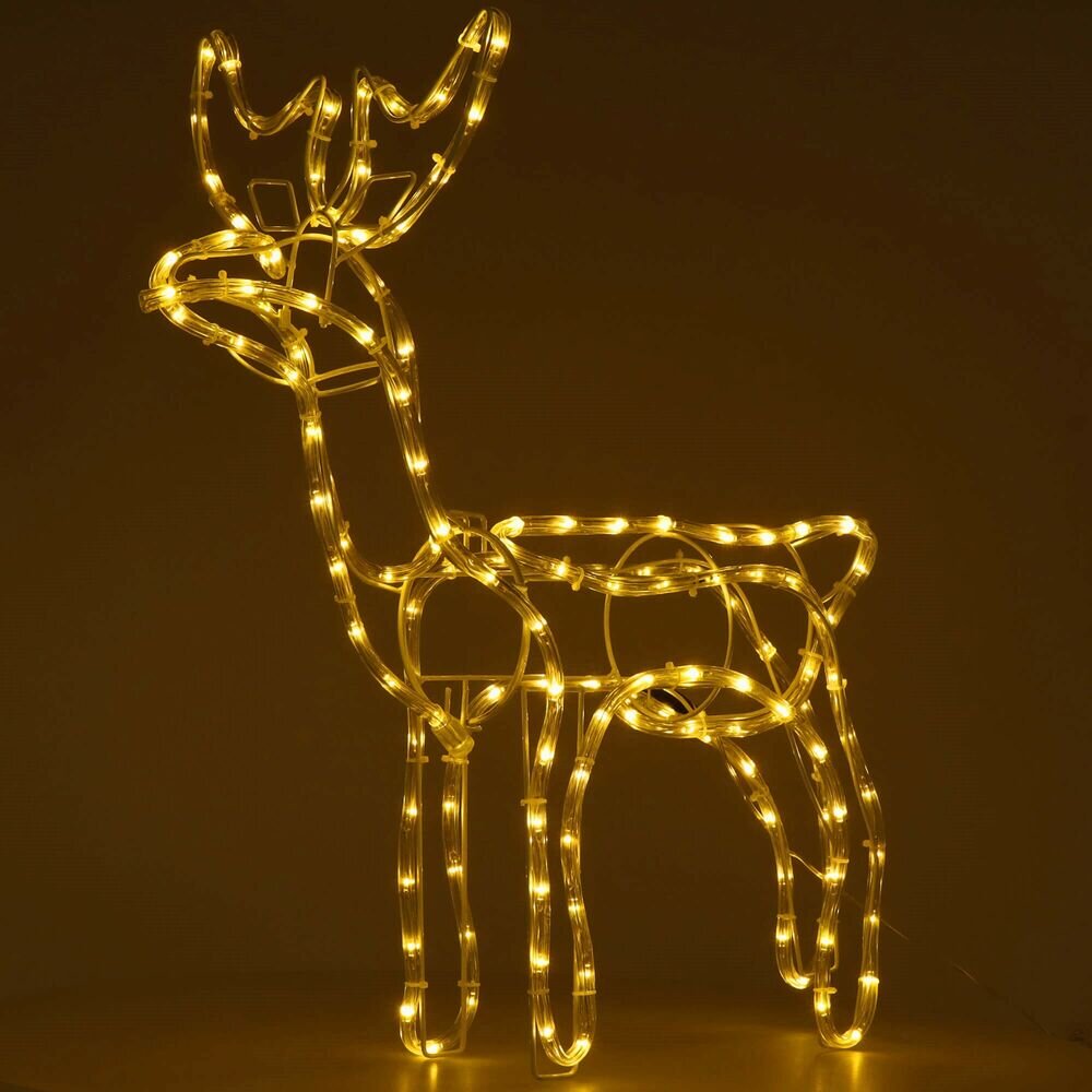 Překrásný sob se vztyčenou hlavou a mohutným parožím. Úžasná 3D světelná dekorace vhodná pro vnitřní i venkovní použití, voděodolné provedení, krytí IP44. Úsporné diody, barva teplá bílá. Délka 61 cm, 144 LED, napájecí kabel 3 m. przeczytaj całość