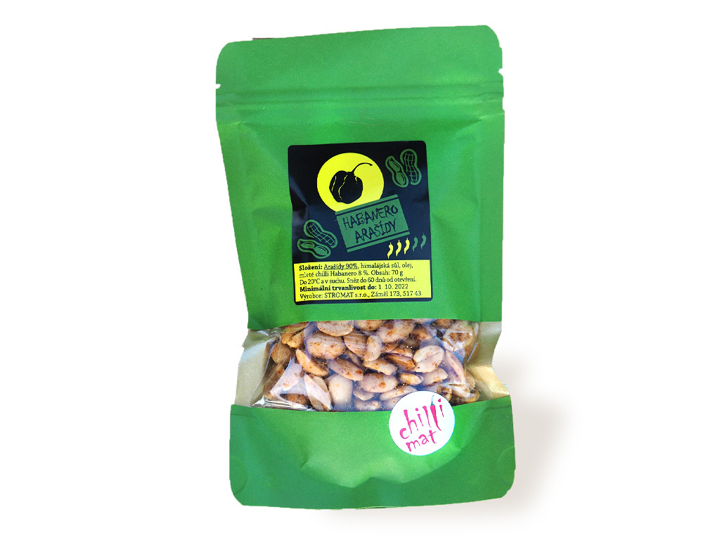 Arašídy namíchané s chilli papričkou Habanero vás zahřejí. Zobněte si u televize, při práci nebo kdykoli potřebujete energii a trochu ostrosti na povzbuzení.Nejprve cítíte chuť arašídů v kombinaci s himálajskou solí a potom přijde příjemný pal. Samotné Habanero dosahuje pálivosti přibližně 350...
