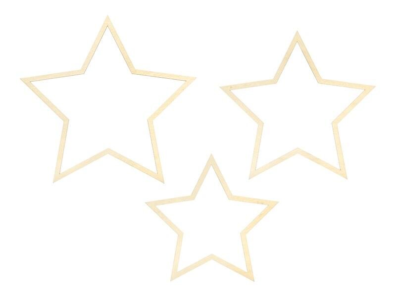 Zawieszki dekoracyjne Gwiazdy wykonane z drewna, zestaw zawiera 3 gwiazdy, wymiar od ok. 35 x 33 cm do ok. 26,5 x 25 cm.(1 op. / 3 szt.) przeczytaj całość