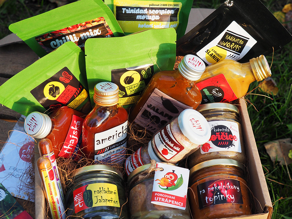 Vychytaný set chilli dobrůtek k širokému využití. Omáčky k hotovému jídlu či nakládání masa, masová směs na topinky k rychlé večeři nebo na luxusní jednohubky, mleté koření k dochucení, hořčice k masu i uzenině, nakládané křupavé plody nejen na pizzu, utrápenci k pivu, celé plody do polívky,...
