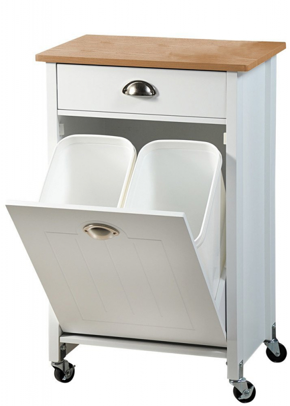 Kuchyňský regál s odpadkovými koši na tříděný odpad. przeczytaj całość