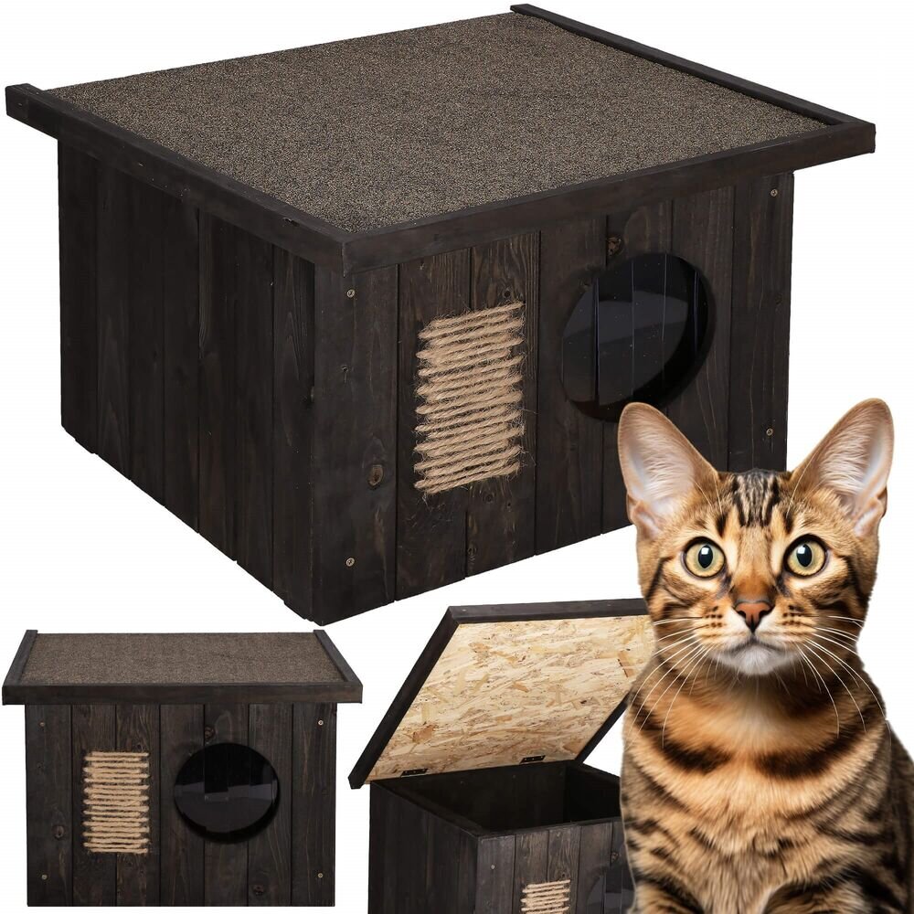 Venkovní domeček bouda pro kočky 58x50x36 cm SPRINGOS ZAPA černá