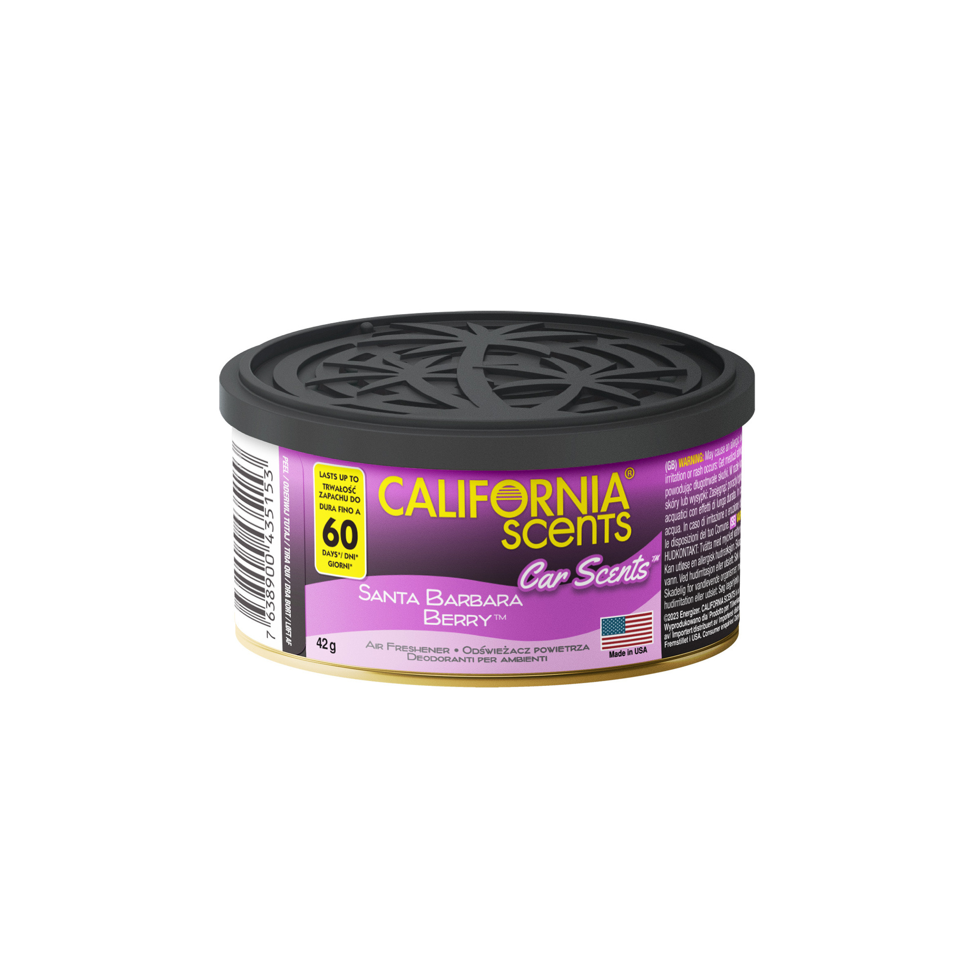 Vôňa do auta California Scents Santa Barbara Berry vás okúzli svojou jedinečnou, zmyselnou vôňou lesného ovocia, čerstvých zelených listov a marmelády. Originálny americký osviežovač vzduchu s pevnou náplňou, v praktickej, malej plechovke, ktorý prevonia Vaše auto, byt aj kanceláriu. Súčasťou...
