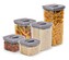 Główne cechy:- Materiał: Plastik- Rozmiar i pojemność: Zestaw zawiera 2 pojemniki o pojemności 460 ml (11,2*11,2*8 cm), 2 pojemniki o pojemności 1100 ml (11,2*11,2*15 cm) oraz 1 pojemnik o pojemności 1500 ml (11,2*11,2*23 cm)- Kolor: Taupe- System szczelny: Otwieranie/zamykanie pokrywki, które utrzymuje żywność świeżą i zapobiega wyciekaniu zawartości- Przezroczyste plastikowe ścianki: Umożliwiają łatwe zobaczenie, co znajduje się w środku