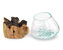 Tato skleněná nádoba spojuje tavené sklo a přírodní dřevo v praktický a estetický doplněk do interiéru. Sklo je ručně tvarované tak, aby přesně zapadlo na dřevěný podklad, což vytváří příjemný kontrast mezi chladným sklem a teplým dřevem. Každý kus je originální díky přirozené struktuře dřeva a...