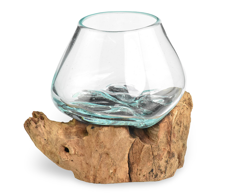Skleněná nádoba na dřevě - malá - var. A