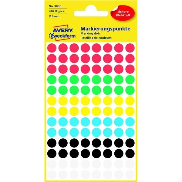 Kulaté etik.Avery Zweckform-mix barev,pr.8mm,416ks