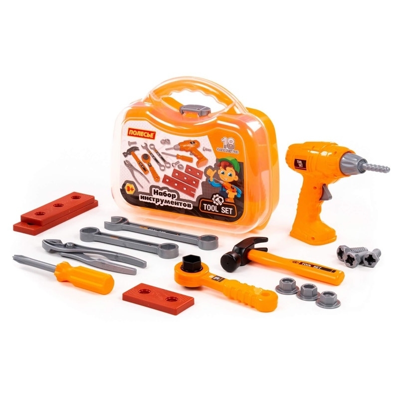 Sada nářadí je umístěna v pohodlném kufříku s rukojetí. Mezi nástroji mladého stavitele:šroubovákkladivoráčnašroubovákklíče (2 ks)kleštěšrouby (3 ks)ořechy (3 ks.)spojovací desky (3 ks) przeczytaj całość