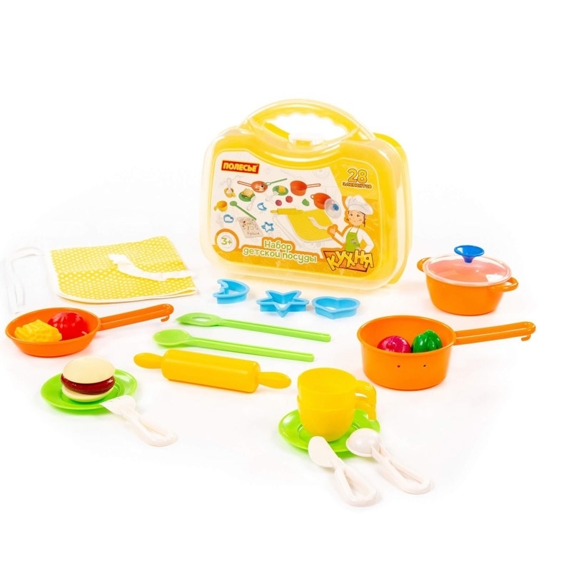 Sada dětského nádobí pomůže uvolnit potenciál malé hospodyňky! Souprava vám umožní prostírat stůl, organizovat večírky pro panenky a přijímat hosty. Pohodlný kufr obsahuje:sklenice (2 ks.)talířky (2 ks.)pánevkastrol s poklicínaběračka s rukojetísada produktů (7 ks.)válečekformičky (3ks)naběračka...
