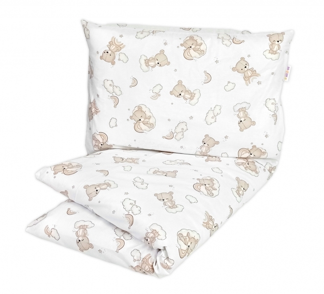 Dětské povlečení, bavlna 2D 140x200/70x80 - Malý medvídek, bílá/béžová; 140x200/70x80cm
