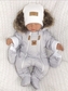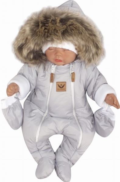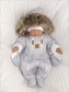 Zateplená zimní kombinéza s kapucí + rukavičky. Kapuce má okouzlující kožešinku. Čepice a šály zobrazené na fotografiích nejsou součástí. Materiál:Vnější strana: 100% polyester.Vnitřní/podšívka: 100% bavlna. Umělá kožešina na kapuci není odnímatelná.jakost.Detailní rozměry:Vel. 56 - délka 40 cm,...
