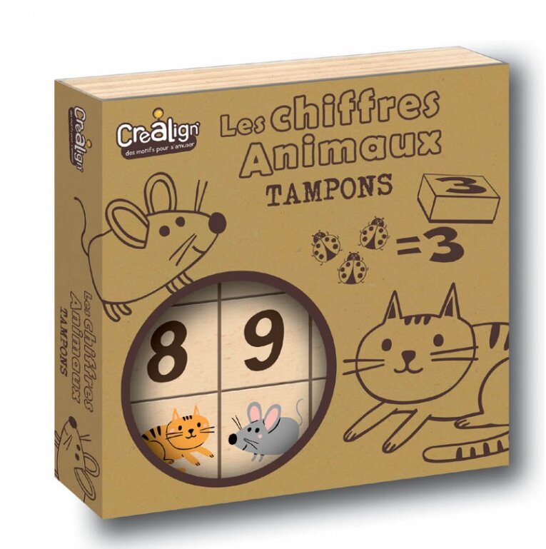 Drevené pečiatky Zvieratá a čísla 15 ksPrispôsobte si svoje výtvory s touto pečiatkovou sadou so zvieratkami a číslami!Sada pečiatok pre deti od francúzskej značky Crea Lign obsahuje 15 drevených pečiatok so zvieratkami a číslami. V balení je aj atramentový pečiatkovací vankúšik s čiernou farbou....