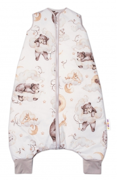 Teplejší spací vak s nohavičkami Baby Nellys, Zvířátka na mráčku, béžový; S (0-2,5r)
