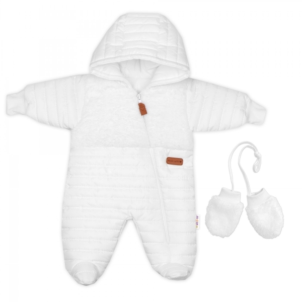 Zimní prošívaná kombinéza s bavlněnou podšívkou, rukavičky, Made with Love, bílá, vel. 74; 74 (6-9m)