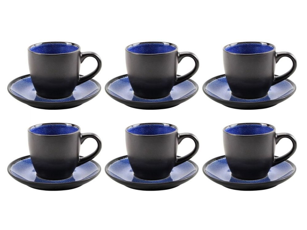 Keramická kávová souprava Santorini - 6x šálek a 6x podšálekKeramická kávová souprava Santorini přinese do vašeho domova kousek středomořské elegance. Tato sada obsahuje šest šálků o objemu 250 ml a šest podšálků, všechny v elegantním černém a tmavě modrém žíhaném provedení. Stylové barvy a...