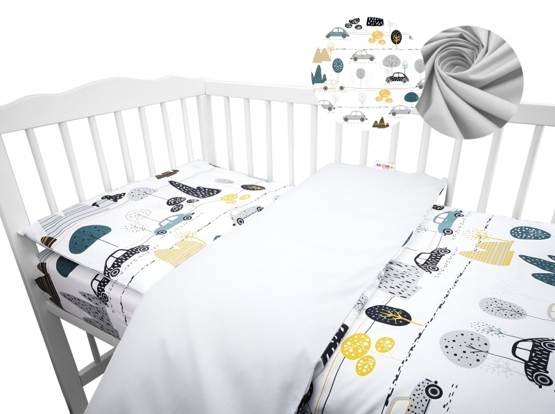 2-dílné bavlněné povlečení Baby Nellys - Auta v aleji, šedá, roz. 135x100 cm; 135x100