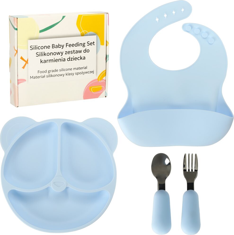 KIK Silikonová sada nádobí pro děti Medvěd 4ks Modrá