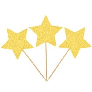 Brokatowe gwiazdki na piku w dwóch wersjach kolorystycznych - srebrne oraz złote. Produkt idealnie nadaje się do dekoracji ciast, tortów, muffinów czy koreczków. Elegancki dodatek na przyjęcie, słodki stół. Surowce wykorzystane do produkcji pochodzą z odpowiedzialnych i legalnych źródeł. W opakowaniu znajduje się 8 pickerów. Długość gwiazdki z patyczkiem to 10 cm.