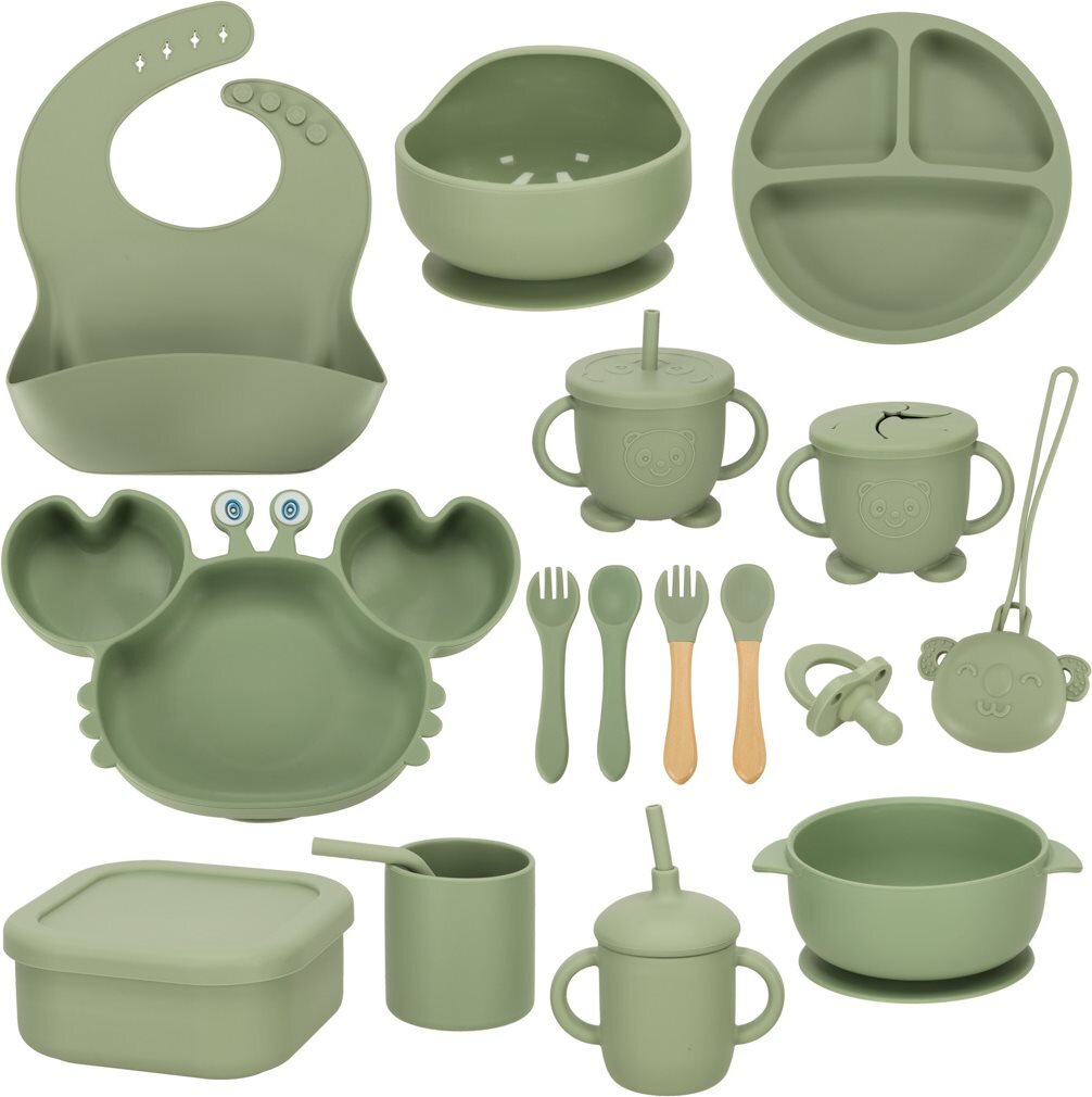KIK Silikonová sada nádobí pro děti Krab 19ks Zelená