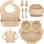 Sada 8ks silikonového nádobí pro děti. Sada obsahuje: talíř, bryndák, misku s přísavkou, hrníček s brčkem a příbor. przeczytaj całość