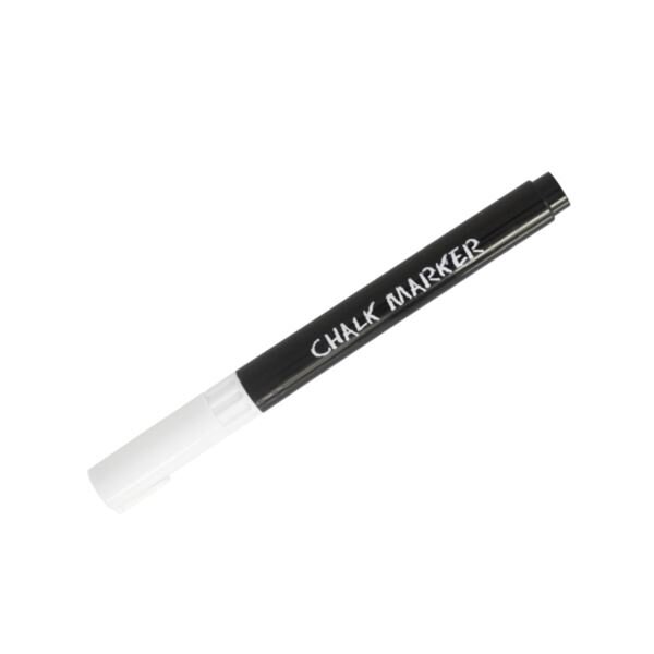 do opisywania tablic, powierzchni szklanych i plastikowych ; właściwy do pisania wiadomości lub nazw ; przed użyciem dokładnie wstrząsnąć i kilkakrotnie przycisnąć końcówkę na papierze, aby nasączyła się kredą ; po wyschnięciu jest odporny na ścieranie ; do usunięcia z powierzchni użyj wilgotnej ściereczki ; nie zawiera substancji toksycznych, jest bezwonny ; okrągła końcówka 3 mm ; kolor biały ; opakowanie 1 szt.