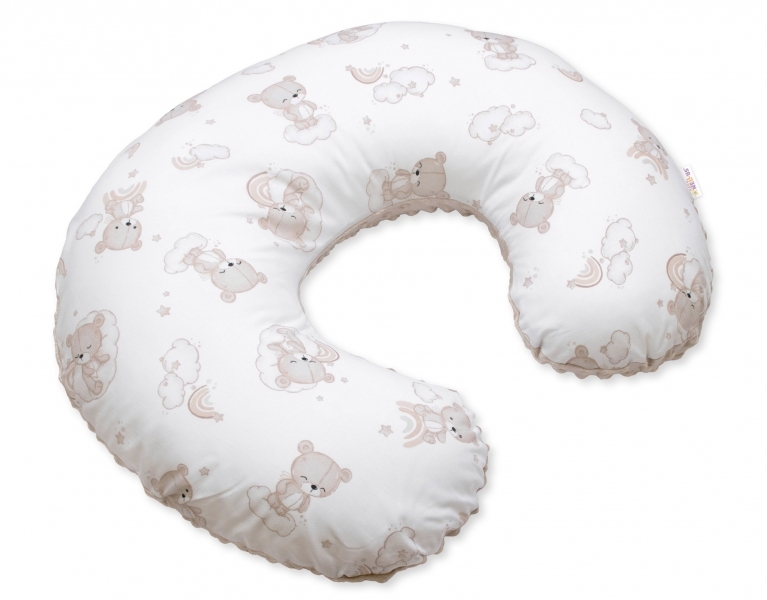 Kojící polštář, bavlna/minky, Malý medvídek, bílá/hnědá