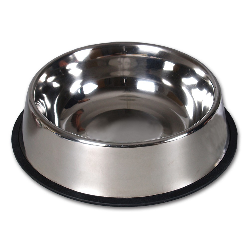 Nierdzewna miska dla dużych psów na wodę lub karmę. Guma w dolnej części zapobiega jej przesuwaniu się po podłodze. Pojemność: 1800 ml. Średnica: 29,5 cm przeczytaj całość