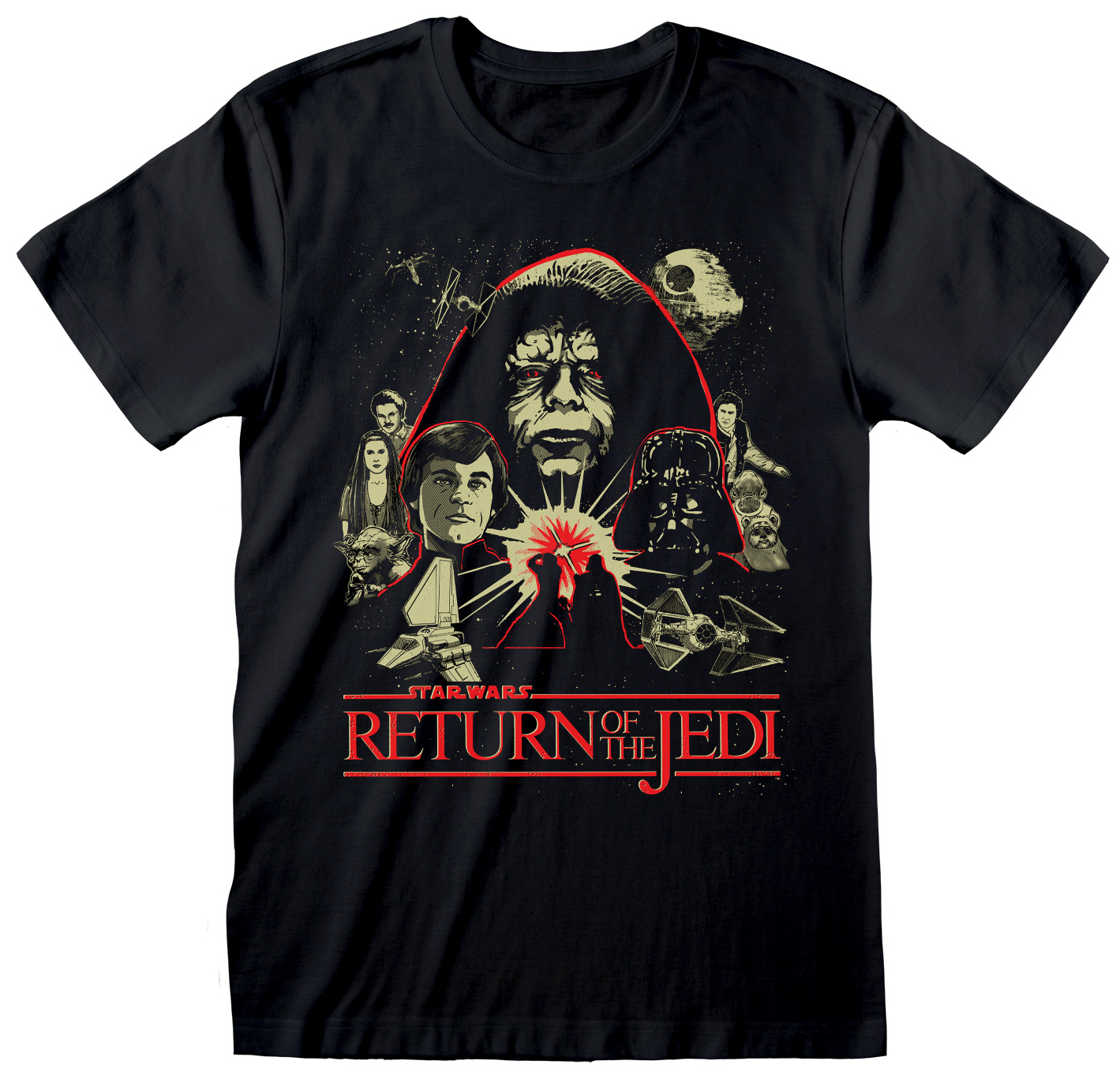 Oficiální produkt - pánské tričko z katalogu výrobků s grafikou a licencí populární fílmové ságy Star Wars (Hvězdné války). Zboží je legálně licencováno a prodáváno se souhlasem vlastníků licenčních práv.Atraktivní černé tričko s krátkým rukávem s grafikou Star Wars: Return of the Jedi. Tričko je...
