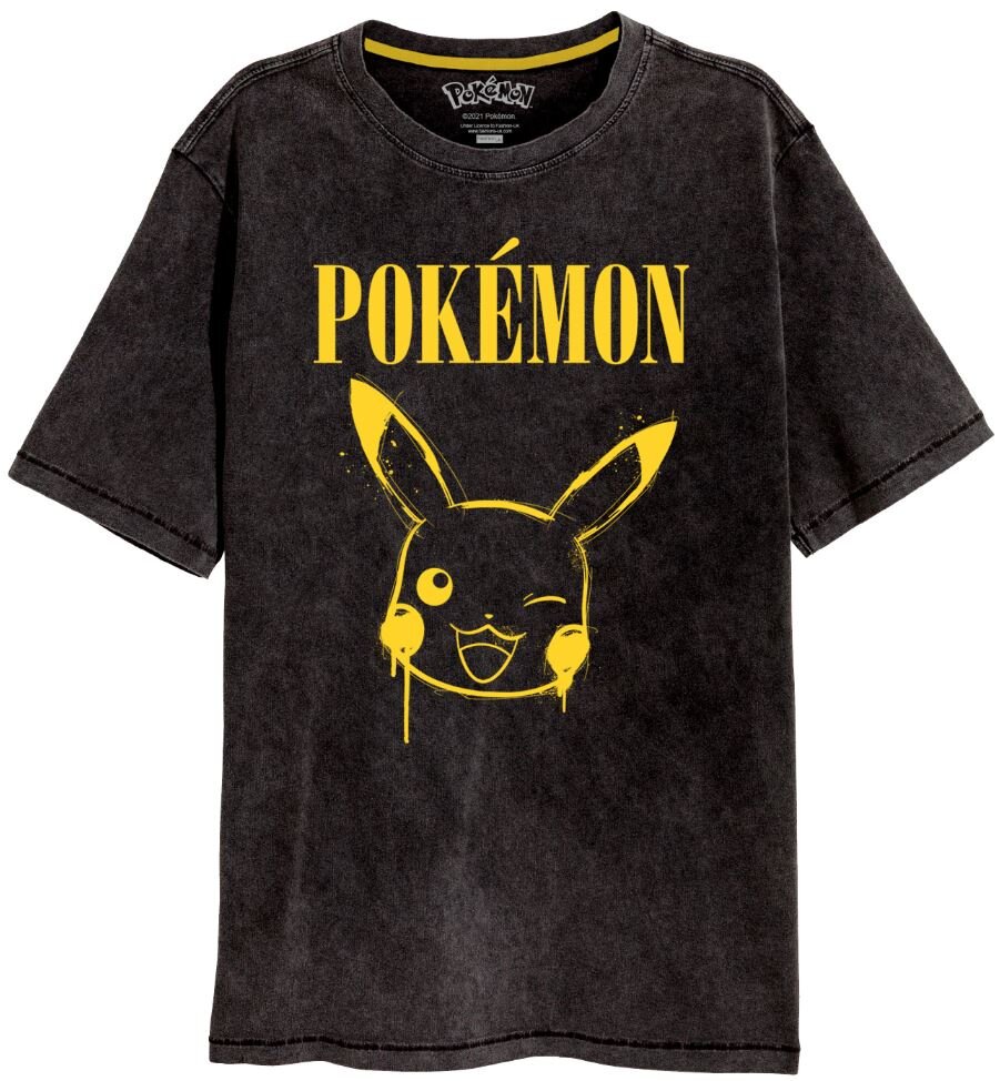 Oficiální pánské tričko a doplňkové zboží z katalogu fashion produktů japonské mediální franšízy spravované japonskou společností The Pokémon Company se znakem a grafikou brandu Pokémon.Zboží je legálně licencováno a prodáváno se souhlasem vlastníků licenčních práv.Černé tričko se žlutým nápisem...