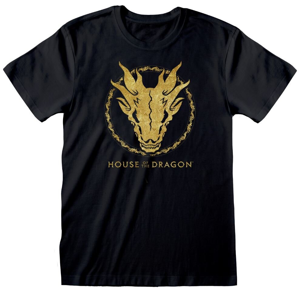 Pánské tričko House of The Dragon: Gold Ink Skull (L) černá bavlna
