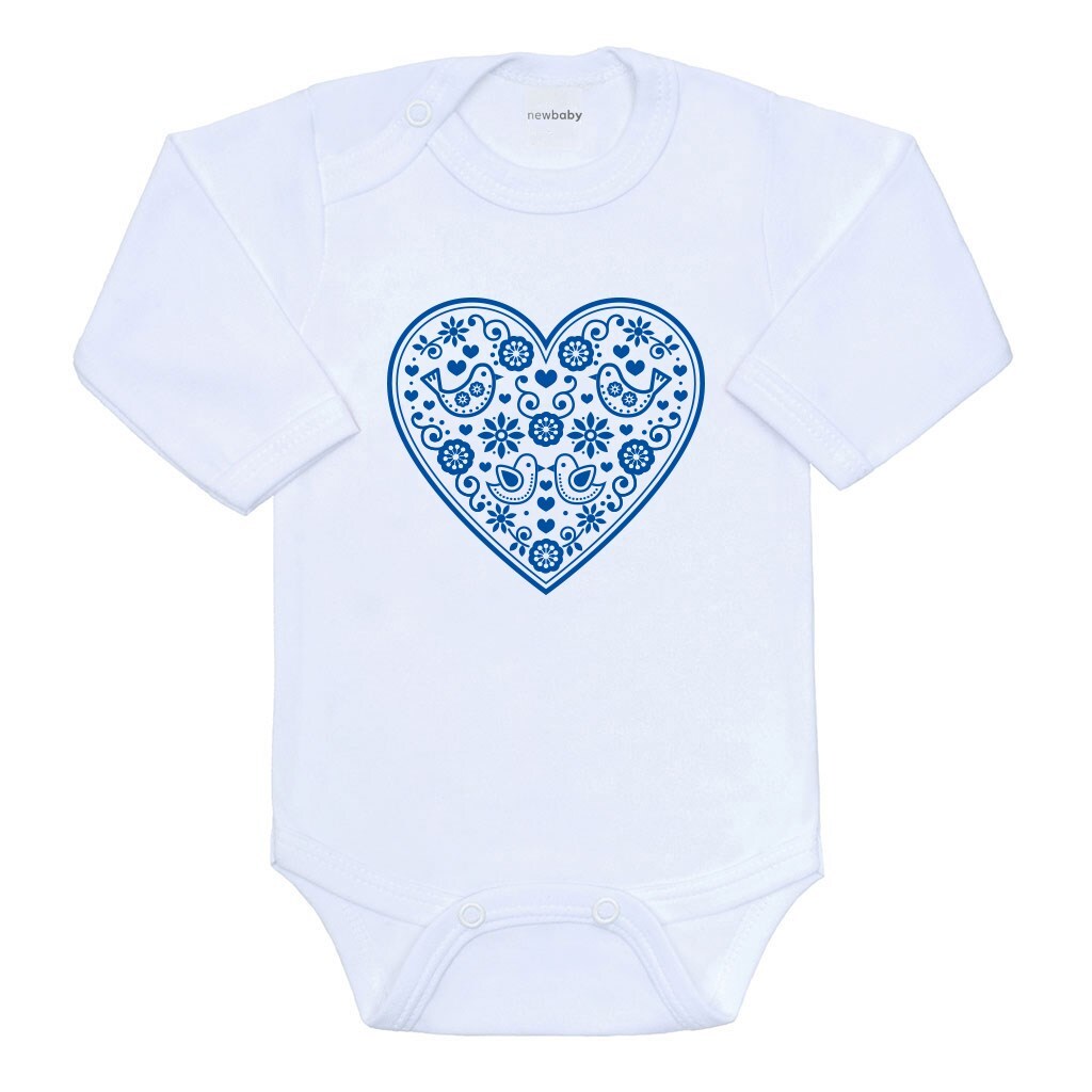 Dětské body s potiskem New Baby Lidový vzor modré srdíčko - velikost 62 (3-6m)