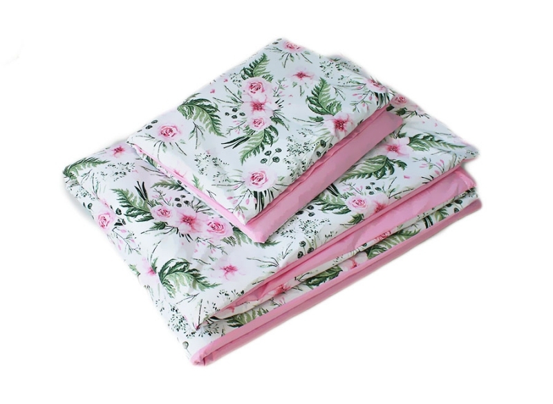 Baby Nellys 2-dílné povlečení 135x100, Květinky, bavlněné - růžová, bílá s potiskem; 135x100