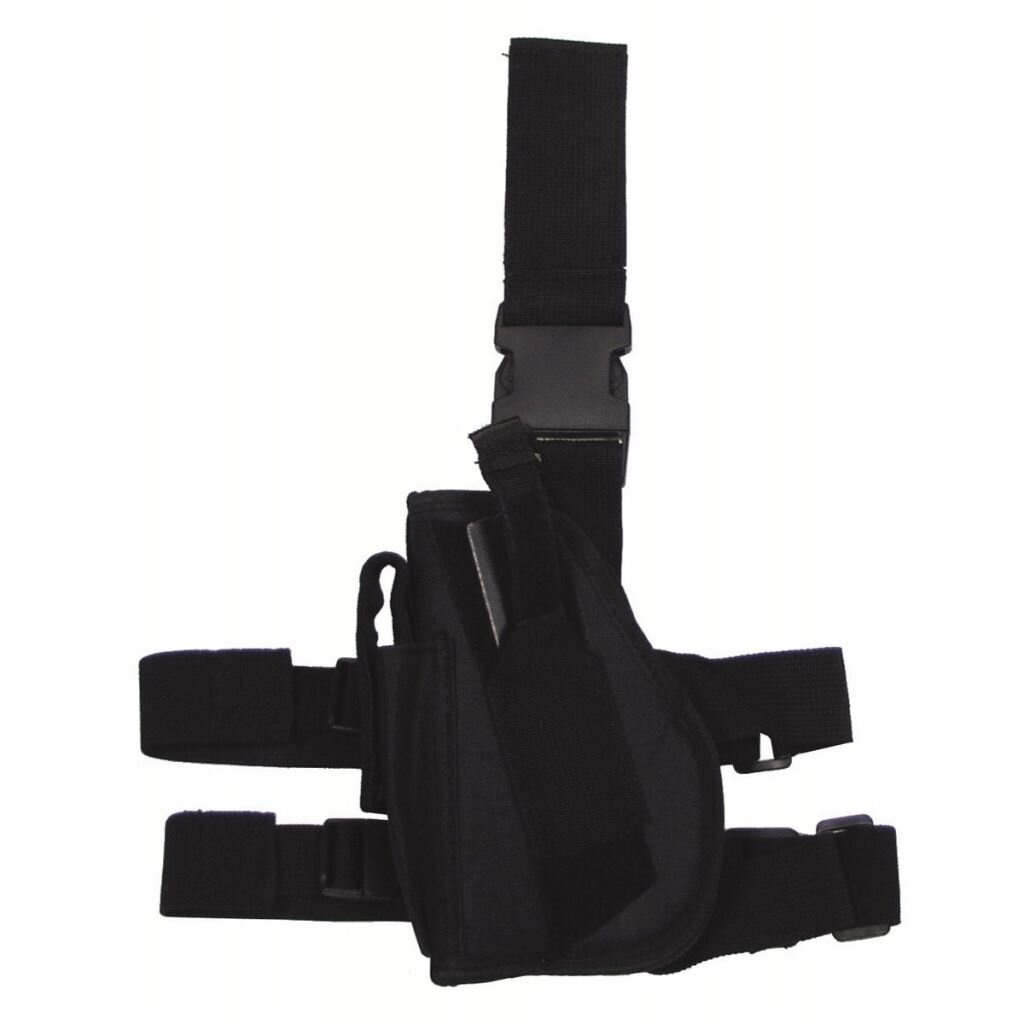 Stehenní pistolové pouzdro s elastickými nastavitelnými páskami na suchý zip. Určeno pro levoruké střelce. Kapsa na zásobník (9 mm) ze strany pouzdra. Zajištění zbraně v pouzdře pomocí Velcro pásku. przeczytaj całość
